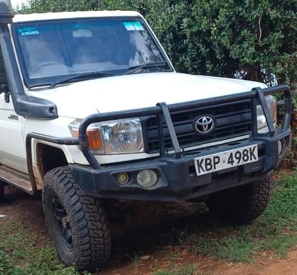 His white Toyota Land Cruiser pickup is detained at the Machakos Police Station.